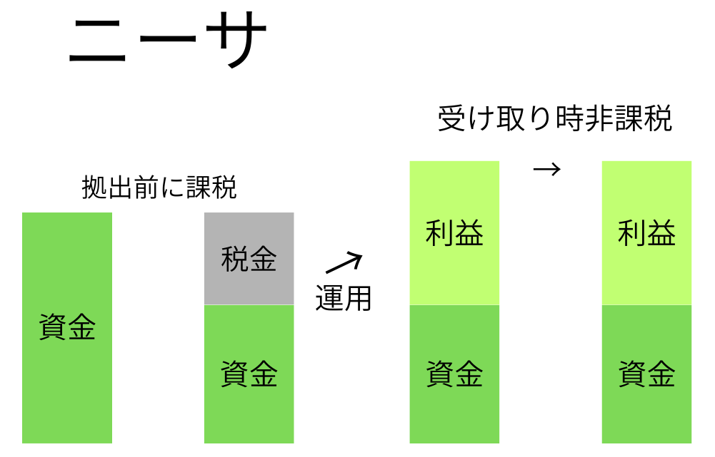 NISAの元手(iDeCo拠出額-所得税・住民税) → NISAの評価額